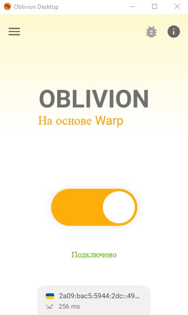 Дополнительная информация: Oblivion VPN использует лучшие возможности Wireguard и других технологий для обеспечения безболезненного и безопасного подключения к открытому Интернету.