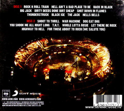 Треклист 01. Rock N Roll Train 02. Hell Ain't A Bad Place To Be 03. Back In Black 04. Big Jack 05. Dirty Deeds Done Dirt Cheap 06. Shot Down In Flames 07. Thunderstruck 08. Black Ice 09. The Jack 10. Hells Bells 11. Shoot To Thrill 12. War Machine 13. Dog Eat Dog 14. You Shook Me All Night Long 15. T.N.T. 16. Whole Lotta Rosie 17. Let There Be Rock 18. Highway To Hell 19. For Those About To Rock (We Salute You)
